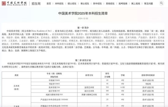中国美术学院2025年本科招生简章
